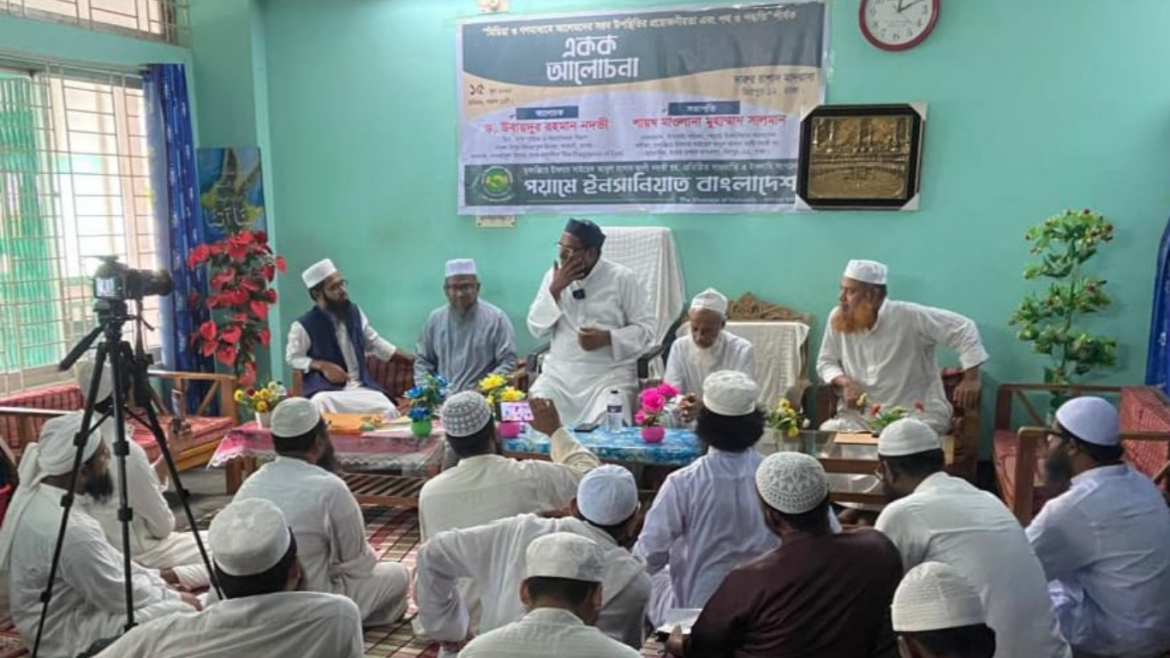 ‘মিডিয়া ও গণমাধ্যমে আলেমদের সরব উপস্থিতির প্রয়োজনীয়তা এবং পথ ও পদ্ধতি’ শীর্ষক এ আলোচনাসভাটি আয়োজন করে দাওয়াতি সংগঠন পয়ামে ইনসানিয়াত বাংলাদেশ।
