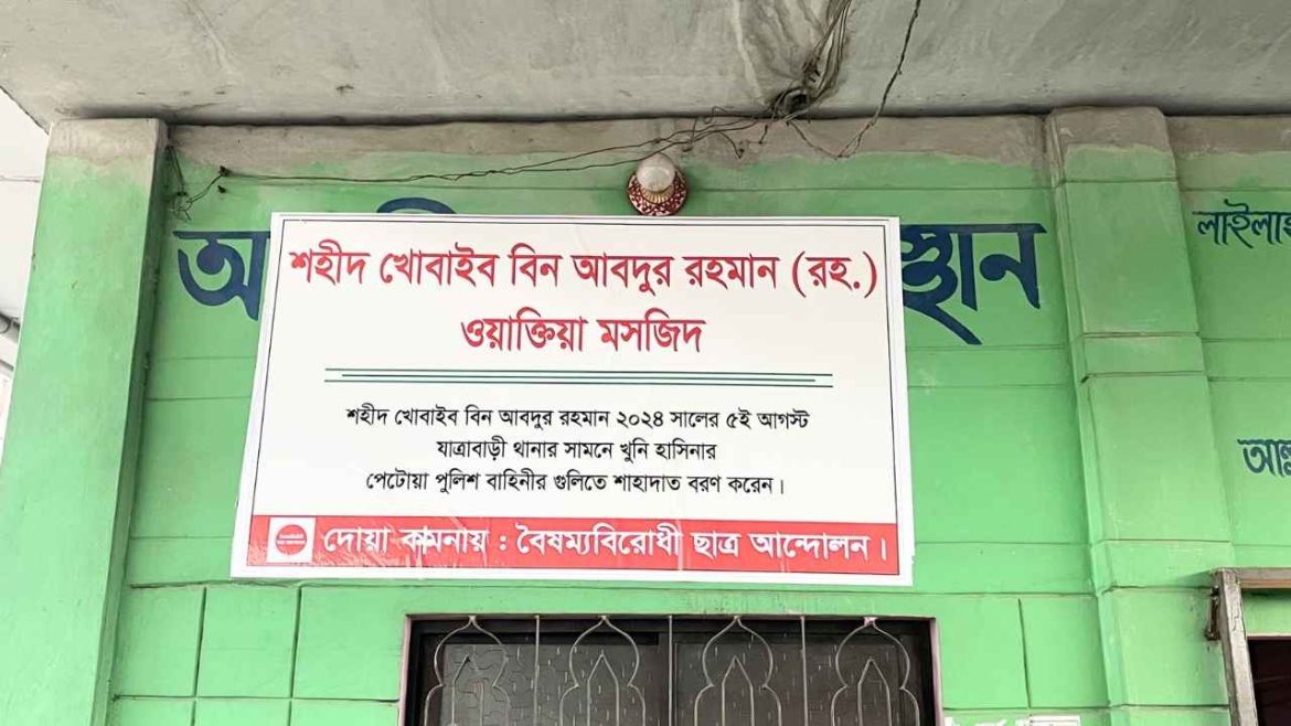 ২০২৪ সালের ৫ই আগস্ট যাত্রাবাড়ী থানার সামনে ফ্যাসিস্ট সরকারের পেটোয়া বাহিনীর গুলিতে শহীদ হন বৈষম্যবিরোধী ছাত্র আন্দোলনের নেতা খোবাইব বিন আব্দুর রহমান (রহ.)। তাঁর শাহাদাতের স্থানসংলগ্ন এলাকায় আজ তাঁর নামানুসারে একটি মসজিদ প্রতিষ্ঠার ঘোষণা দেওয়া হয়েছে।