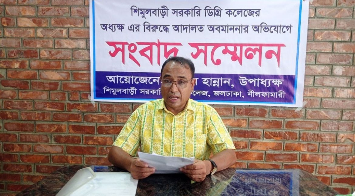 সংবাদ সম্মেলনে তিনি অভিযোগ করে বলেন, ‘২০২১ সালের ৮ আগস্ট শিমুলবাড়ি ডিগ্রি কলেজটি জাতীয়করণ হয়। তখন থেকে আমি বিধিমালা অনুযায়ী কলেজের উপাধ্যক্ষ হিসেবে ভারপ্রাপ্ত অধ্যক্ষের দায়িত্ব পালন করছি। ২০১৮ সালের আত্তীকরণ বিধিমালা অনুযায়ী বিসিএস সাধারণ শিক্ষা ক্যাডার, নন ক্যাডারে পদায়নের বিধান নেই।’