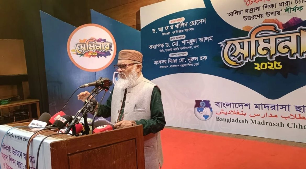 বুধবার ঢাকার আইডিইবি মিলনায়তনে ‘টেকসই উন্নয়নে আলিয়া মাদ্রাসা শিক্ষা ধারা: চ্যালেঞ্জ ও উত্তরণের উপায়’ শীর্ষক সেমিনারে প্রধান অতিথির বক্তৃতায় তিনি এসব কথা বলেন। বাংলাদেশ মাদ্রাসা ছাত্রকল্যাণ পরিষদ এ সেমিনার আয়োজন করে।