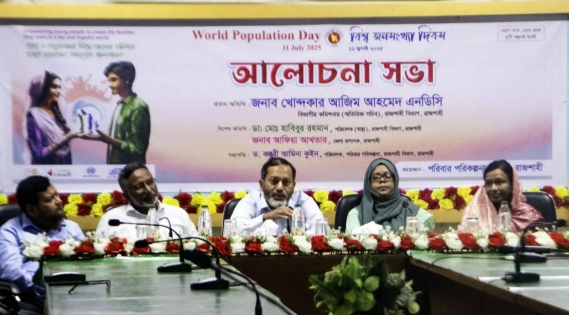 সোমবার (১৪ জুলাই) দুপুরে রাজশাহী বিভাগীয় পরিবার পরিকল্পনা ভবনের স্পেকট্রাম কনফারেন্স রুমে বিশ্ব জনসংখ্যা দিবস উপলক্ষে আয়োজিত আলোচনা সভায় প্রধান অতিথির বক্তৃতায় এসব বলেন তিনি। বিভাগীয় পরিবার পরিকল্পনা দপ্তর এ অনুষ্ঠানের আয়োজন করে।