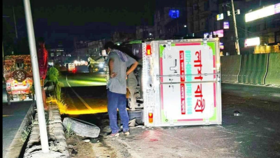 মাইলস্টোন স্কুল অ্যান্ড কলেজের ওপর বিমান বিধ্বস্তের ঘটনায় নিহত শিক্ষার্থীর মরদেহ গ্রামের বাড়ি নেওয়ার পথে গাজীপুরের কালিয়াকৈর উপজেলার মৌচাক এলাকায় একটি ফ্রিজার ভ্যান উল্টে গেছে।