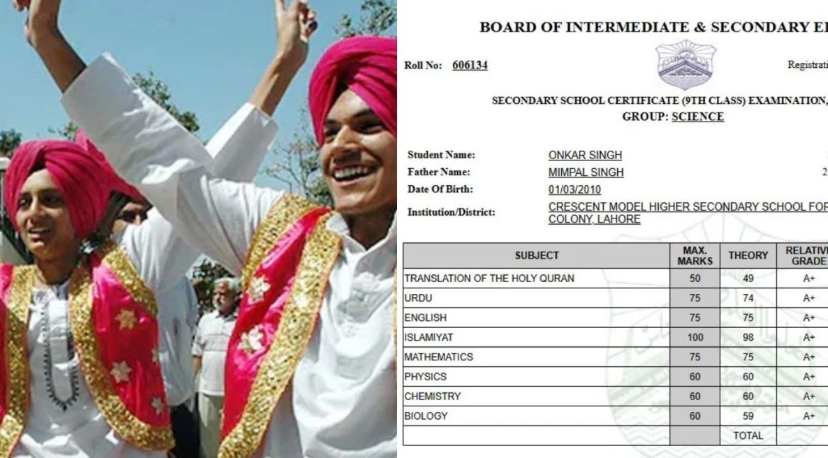 লাহোর বোর্ড অব ইন্টারমিডিয়েট অ্যান্ড সেকেন্ডারি এডুকেশনের নবম শ্রেণির পরীক্ষায় শিখ শিক্ষার্থী ওনকার সিং অসাধারণ ফলাফল করেছে।