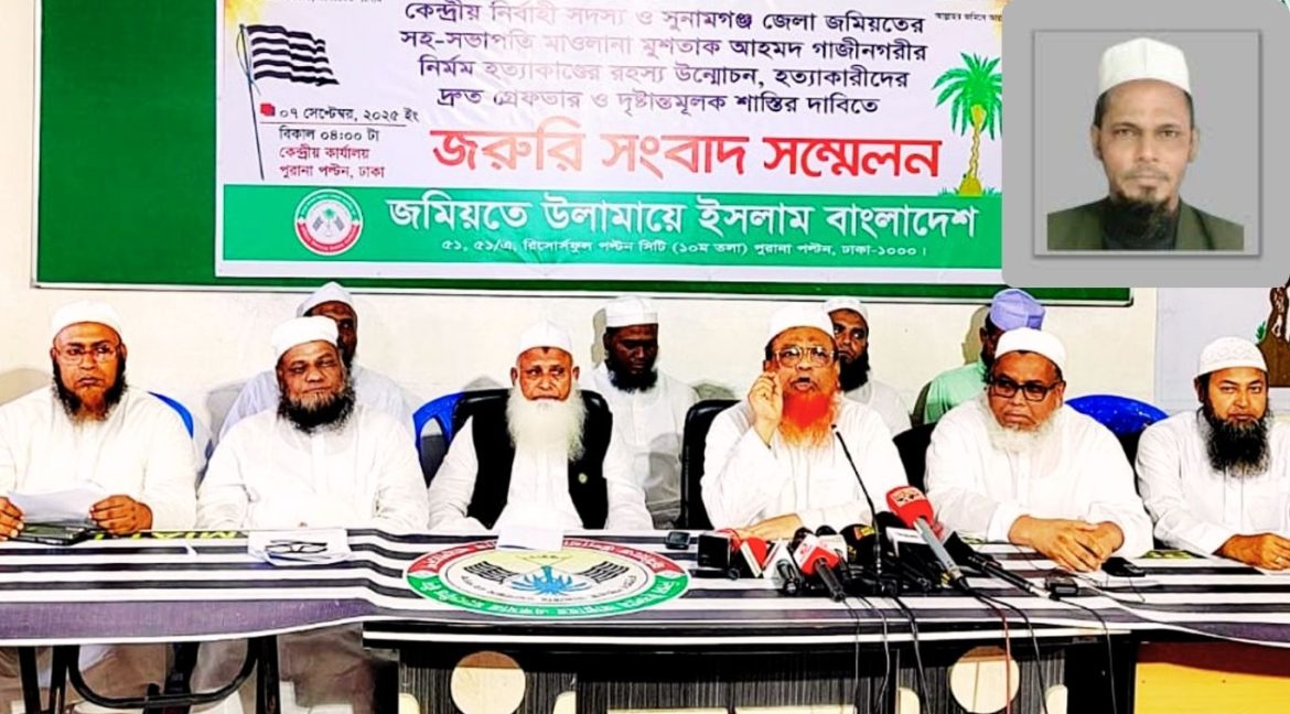 জমিয়ত নেতা মুশতাক হত্যার দৃষ্টান্তমূলক শাস্তি চায় দলটি