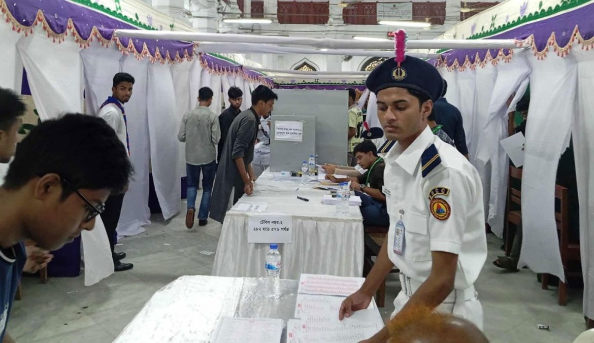 ঢাকা বিশ্ববিদ্যালয় কেন্দ্রীয় ছাত্র সংসদ (ডাকসু) ও হল সংসদ নির্বাচনের ভোটগ্রহণ শুরু হয়েছে। মঙ্গলবার (৯ সেপ্টেম্বর) সকাল ৮টায় শুরু হয়েছে ভোটগ্রহণ, টানা চলবে বিকেল ৪টা পর্যন্ত। বিশ্ববিদ্যালয়ের ৮টি কেন্দ্রে ৮১০টি বুথে চলছে ভোটগ্রহণ।