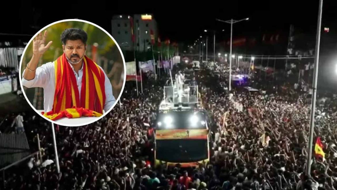 প্রত্যক্ষদর্শীরা জানান, বিজয়ের আগমনে বিলম্ব হওয়ায় মানুষ ছয় ঘণ্টার বেশি সময় ধরে ভিড় করে দাঁড়িয়ে ছিলেন। পরে তিনি বক্তব্য শুরু করলে পরিস্থিতি নিয়ন্ত্রণের বাইরে চলে যায়। হঠাৎ কয়েকজন অচেতন হয়ে পড়লে বিজয় তার বক্তব্য বন্ধ করেন এবং প্রচারণার বাস থেকে ভিড়ের দিকে পানি ছুড়ে দেন। আহতদের সহায়তার জন্য তিনি পুলিশের কাছে আহ্বান জানান।