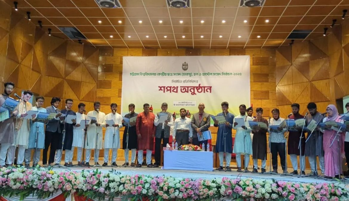 চট্টগ্রাম বিশ্ববিদ্যালয় কেন্দ্রীয় ছাত্র সংসদ (চাকসু), হল ও হোস্টেল সংসদ নির্বাচন-২০২৫ এ নির্বাচিত প্রতিনিধিবৃন্দের শপথগ্রহণ অনুষ্ঠান অনুষ্ঠিত হয়েছে।