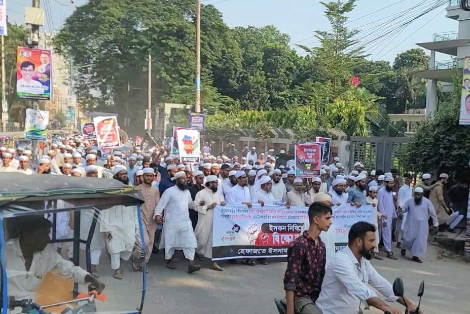 কুমিল্লায় ইসকন নিষিদ্ধ ও গুম-ধর্ষণ ঘটনার বিচার দাবিতে হেফাজতের বিক্ষোভ