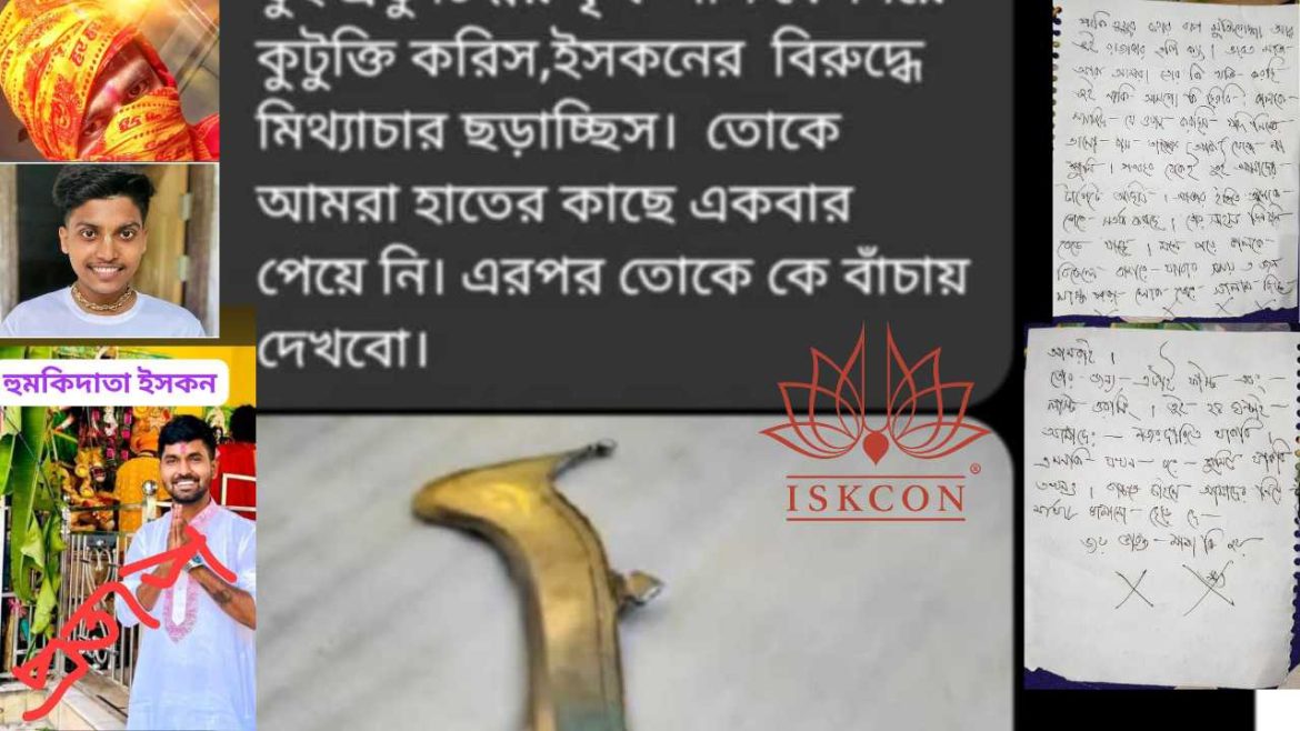 তিনি এক অডিও বার্তাও প্রকাশ করেন, যেখানে কথিত ইসকন সদস্যের পক্ষ থেকে হুমকি শোনা যায়।