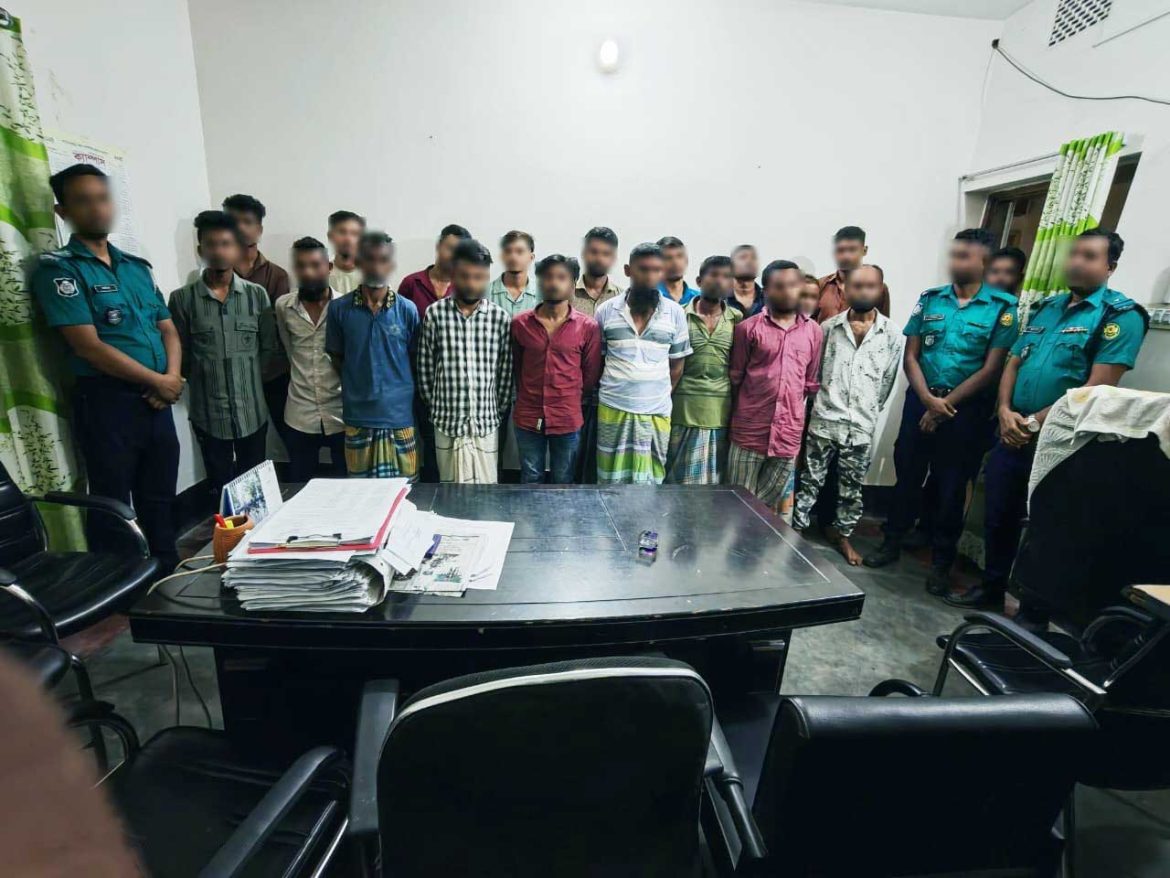 গ্রেপ্তারকৃতরা হলো- ১। মো. আফজাল হোসেন বাবু (৩৫) ২।মো. আজিজুল ইসলাম (৩২) ৩। মো. বশির (৩৫) ৪। মো. বাবু (৪৫) ৫। মো. জাবেদ রহমান (২৩) ৬। মো. নিরব (২০) ৭। মো. রাজীব (২৭) ৮। মো. চুন্নু মিয়া (৫০) ৯। মো. রফিকুল ইসলাম (৪০) ১০। মো. রবিন হাসান (২০) ১১। মো. শাহীন খান (২৯) ১২। মো. এনায়েত হক শাকিল (২৬) ১৩। মো. সোহাগ (৩০) ১৪। মো. মিজানুর রহমান (২৬) ১৫। মো. আরমান আলী (২৩) ১৬। মো. ফায়েক (২৭) ১৭। মো. সাইদুল ইসলাম (৩৮ ) ও ১৮। রবিউল ইসলাম (৩২)।