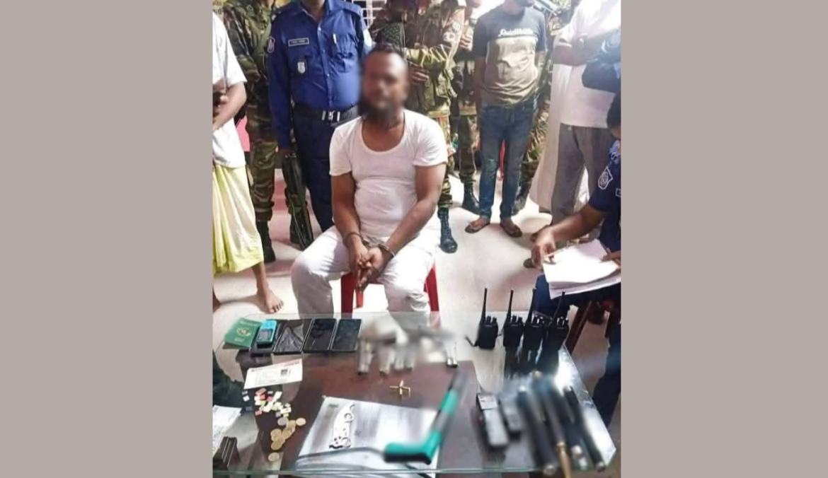 অভিযান পরিচালনা করেন। এসময় তাদের কাছ থেকে বিপুল পরিমাণ অ’স্ত্র উদ্ধার করা হয়। এর মধ্যে রয়েছে দুটি পিস্তল, তিনটি ম্যাগাজিন, চার রাউন্ড গু-লি, চারটি ওয়াকিটকি, চারটি বেটন, দুটি ইলেকট্রিক শর্ট মেশিন, একটি হ্যামার নিল গান, একটি চাকু।