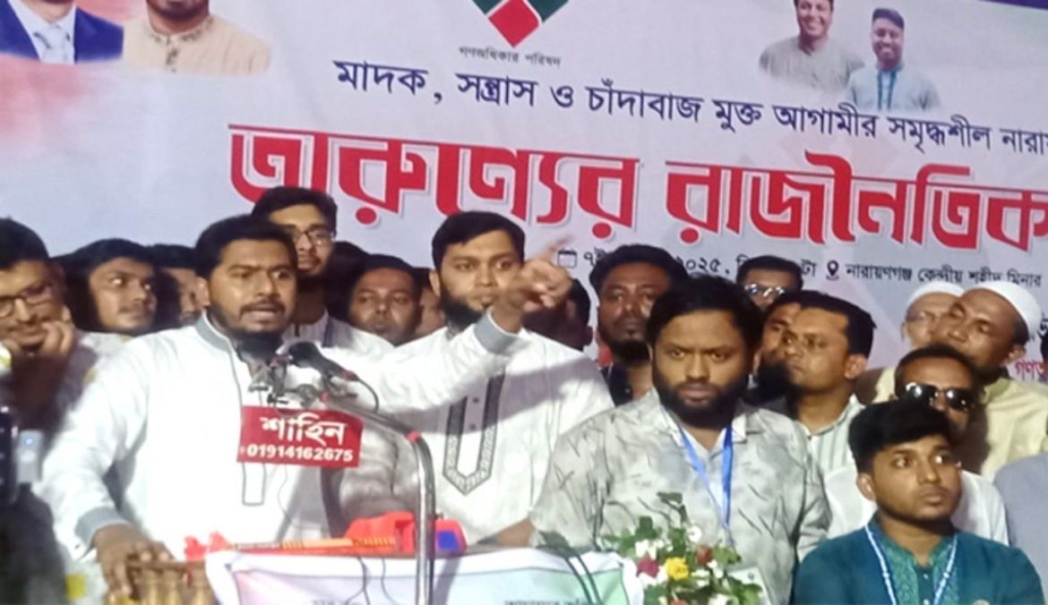 শুক্রবার (৮ নভেম্বর ) বিকেলে নারায়ণগঞ্জ শহরের চাষাঢ়ায় শহীদ মিনারে যুব অধিকার পরিষদ আয়োজিত ‘তরুণ্যের রাজনৈতিক সমাবেশ’ শীর্ষক সম্মেলনে তিনি এসব কথা বলেন।