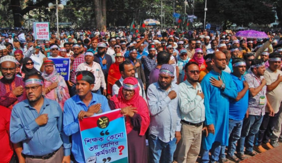 দশম গ্রেডে বেতনসহ তিন দফা দাবি বাস্তবায়নের দাবিতে আজ শনিবার (৮ নভেম্বর) থেকে রাজধানীর কেন্দ্রীয় শহীদ মিনারে লাগাতার অবস্থান কর্মসূচি শুরু করেছেন সরকারি প্রাথমিক বিদ্যালয়ের সহকারী শিক্ষকরা।