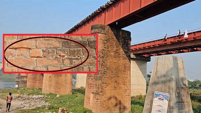 ভূমিকম্পে ঘোড়াশাল রেলসেতুর ২ ও ৩ নাম্বার পিলারে ফাটল