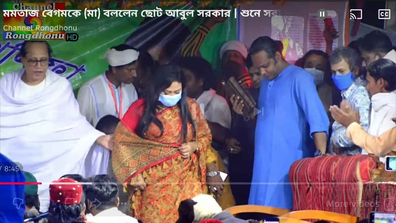 দুই বছর আগের একটি ভিডিওতে দেখা যায়, শিল্পী ও তৎকালীন আওয়ামী লীগ এমপি মমতাজ বেগমের হাত ধরে তাকে মঞ্চে উঠতে সাহায্য করছেন আবুল সরকার। এসময় তিনি বলেন—‘আজকে আমার এমন আনন্দের দিন, যে আনন্দ ভাষায় প্রকাশ করা যায় না। আমার মা মমতাজ বেগম আসছে পদধূলি দিতে—আমি ধন্য হয়ে গেছি।’