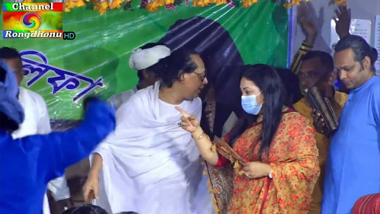 মঞ্চে মমতাজ বেগমের হাত ধরে আছে আল্লাহ নিয়ে জঘন্য কটূক্তিকারী বাউল আবুল সরকার