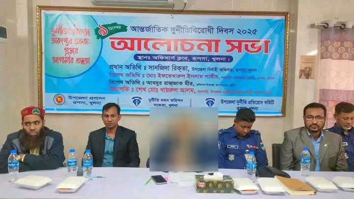 সভায় প্রধান অতিথির বক্তৃতা করেন রূপসা উপজেলা রূপসা উপজেলা নির্বাহী অফিসার সানজিদা রিকতা। বিশেষ অতিথির বক্তৃতা করেন রূপসা উপজেলা সহকারী কমিশনার (ভূমি) ইফতেখারুল ইসলাম শামীম, রূপসা থানার নবাগত অফিসার ইনচার্জ আবদুর রাজ্জাক মীর। রূপসায় উপজেলা প্রশাসন, দুর্নীতি দমন কমিশন ও উপজেলা দুর্নীতি প্রতিরোধ কমিটির আয়োজিত আলোচনা সভায় সভাপতিত্ব করেন উপজেলা দুর্নীতি প্রতিরোধ কমিটির সভাপতি শেখ মো. খায়রুল আলম লাভলু।