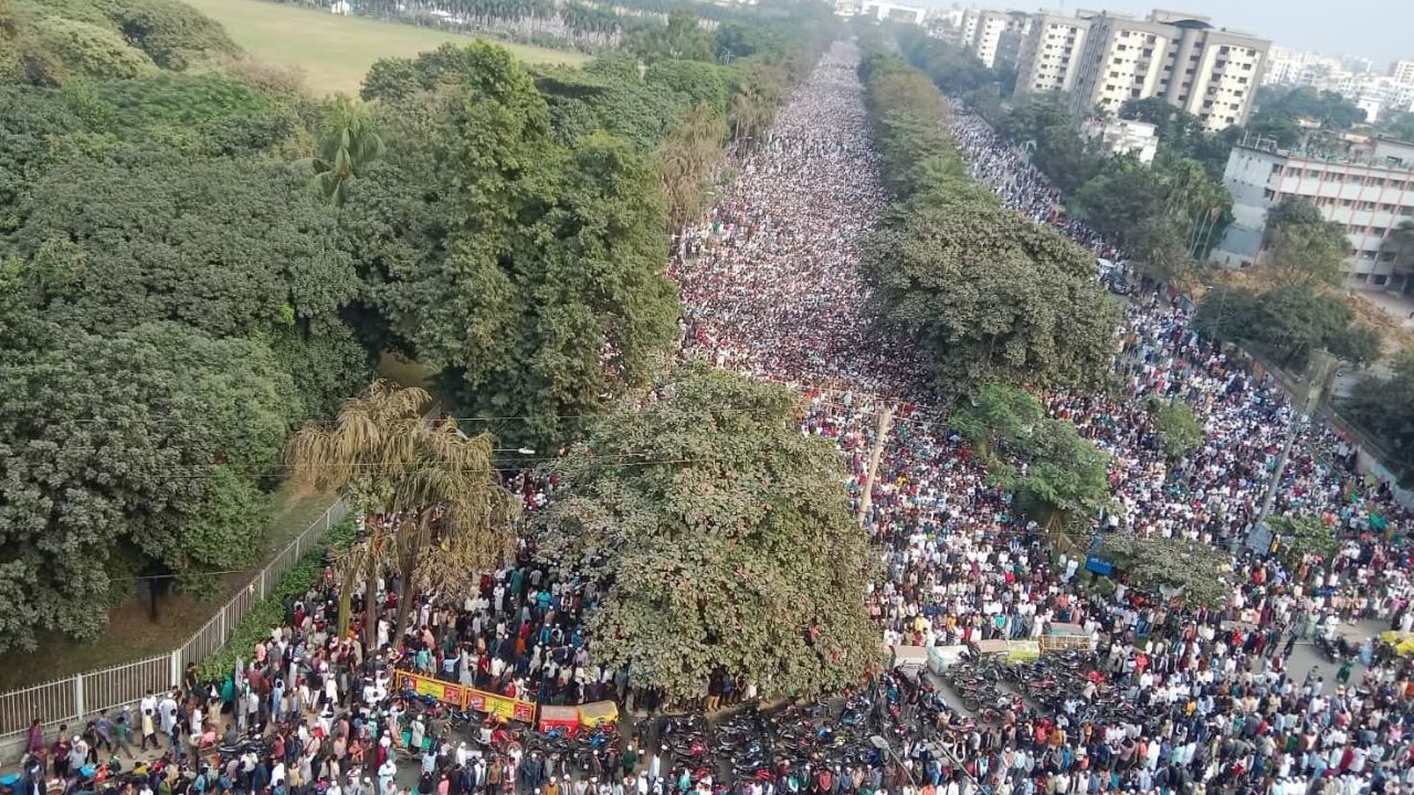 সংসদ ভবন মাঠ পেরিয়ে আশেপাশের সকল এলাকায় ছেয়ে যায় লোকারণ্য