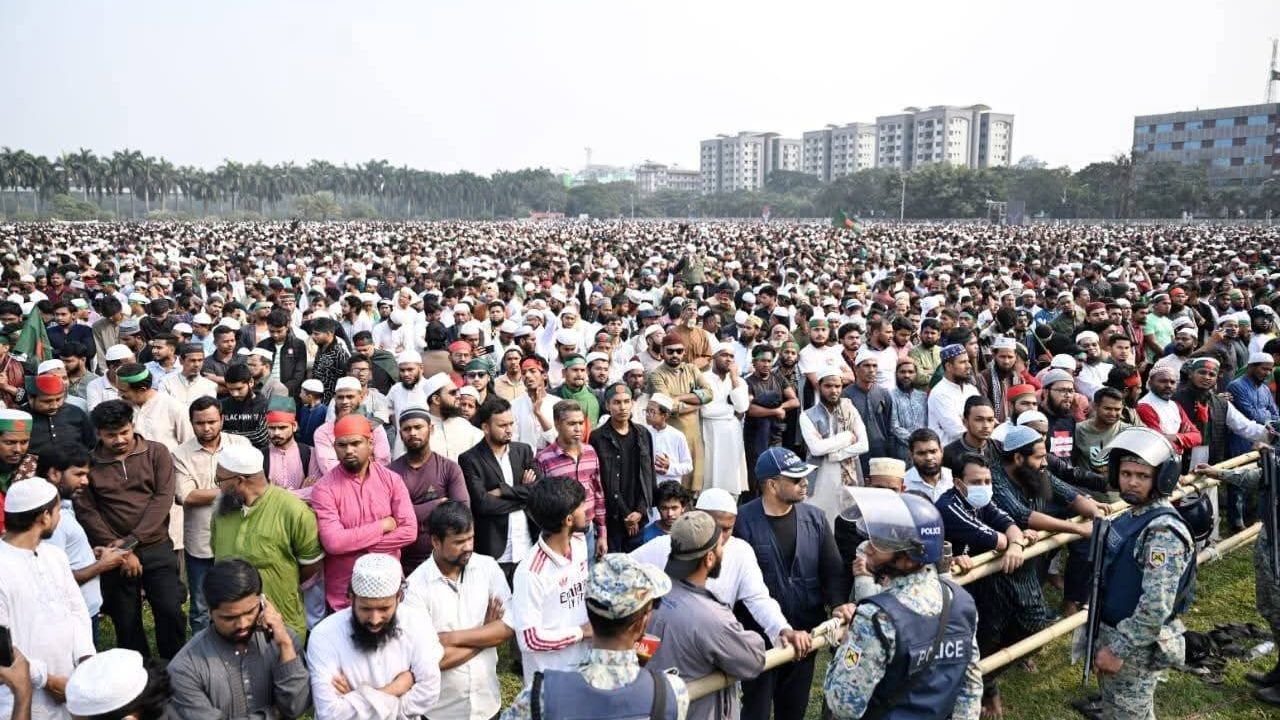 সরেজমিনে দেখা গেছে, সকাল থেকেই মানিক মিয়া অ্যাভিনিউ ও আশপাশের সড়কে মানুষের ঢল নামে। সকাল সাড়ে ১০টায় আইনশৃঙ্খলা বাহিনী আর্চওয়ে গেট দিয়ে সাধারণ মানুষের প্রবেশের অনুমতি দিলে দক্ষিণ প্লাজা দ্রুতই কানায় কানায় পূর্ণ হয়ে ওঠে। দুপুর গড়ানোর সঙ্গে সঙ্গে জনতার স্রোত ছড়িয়ে পড়ে আশপাশের পুরো এলাকায়। উপস্থিত অনেকেই জানান, সাম্প্রতিক সময়ে রাজধানীতে এত বড় জানাযা তারা দেখেননি।