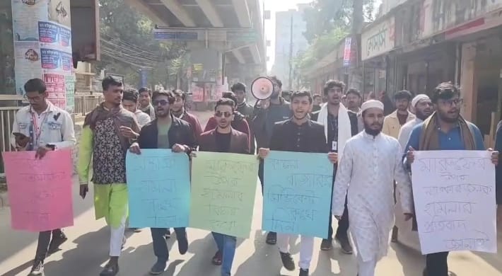 ব্রাহ্মণবাড়িয়া কলেজ শিক্ষার্থীর ওপর ট্রেনের টিকিট কালোবাজারি চক্রের হামলার প্রতিবাদে বিক্ষোভ মিছিল ও প্রতিবাদী সমাবেশ অনুষ্ঠিত হয়েছে।