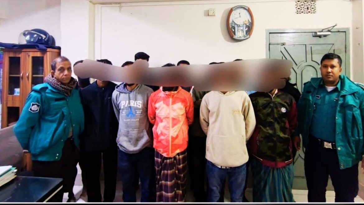 আটককৃতরা হলো জুয়েল (২০), জাবেদ হোসেন ওরফে রনি (২৫), রাকিব (১৯), আল আমিন (৩০), মামুন (৩৩), আমিনুল (২৯), হৃদয় সরকার (২৫), দেলোয়ার মোল্লা (৪২), সুমন মোল্লা (৩২), রুবেল (২৮) ও কবির হোসেন (৪১)।