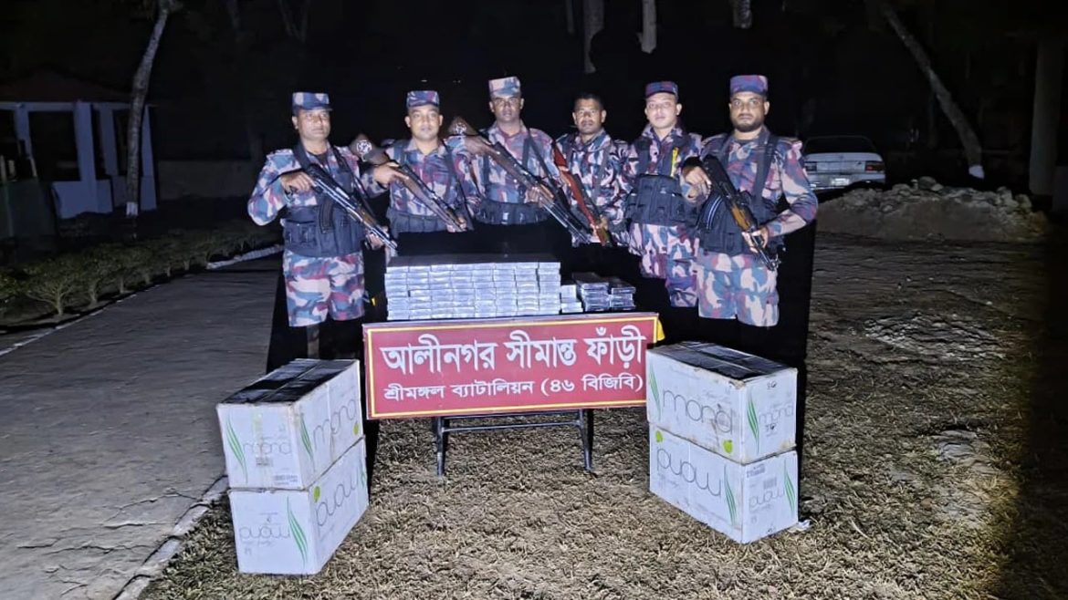 বিজিবির শ্রীমঙ্গল ব্যাটালিয়ন (৪৬ বিজিবি) সূত্রে জানা যায়, ৪৬ বিজিবির অধীনস্থ বিওপি সমূহ মৌলভীবাজার জেলার কুলাউড়া, কমলগঞ্জ ও শ্রীমঙ্গল উপজেলার সীমান্ত এলাকায় দিবারাত্রী ২৪ ঘণ্টা সীমান্ত সুরক্ষার পাশাপাশি নিয়মিত চোরাচালান বিরোধী অভিযান পরিচালনা করছে। এরই ধারাবাহিকতায় শনিবার (১০ জানুয়ারি ২০২৬) রাতে কুলাউড়া উপজেলার সীমান্তবর্তী এলাকায় অভিযান চালিয়ে মালিকবিহীন অবস্থায় ২ হাজার ৫৫০ প্যাকেট ভারতীয় সিগারেট জব্দ করা হয়। জব্দকৃত সিগারেটের আনুমানিক বাজার মূল্য ৫ লাখ ১০ হাজার টাকা।