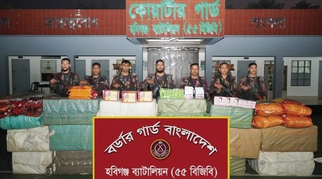 ঢাকা-সিলেট মহাসড়কের হবিগঞ্জের মাধবপুর উপজেলার জগদীশপুরে অভিযান চালিয়ে ১ কোটি ৫৫ লাখ টাকা দামের ভারতীয় বিভিন্ন প্রকার কসমেটিকস, শাড়ি ও জিরা জব্দ করেছে হবিগঞ্জ ব্যাটলিয়ন (৫৫ বিজিবি)।