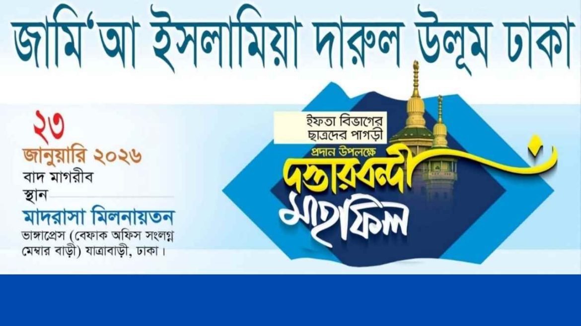 রাজধানীর যাত্রাবাড়ীর ভাঙ্গাপ্রেস বেফাক অফিস সংলগ্ন মেম্বার বাড়ীতে অবস্থিত জামি‘আ ইসলামিয়া দারুল উলূম ঢাকার উদ্যোগে ইফতা বিভাগের ছাত্রদের পাগড়ী প্রদান উপলক্ষে এক দস্তরবন্দী মাহফিল
