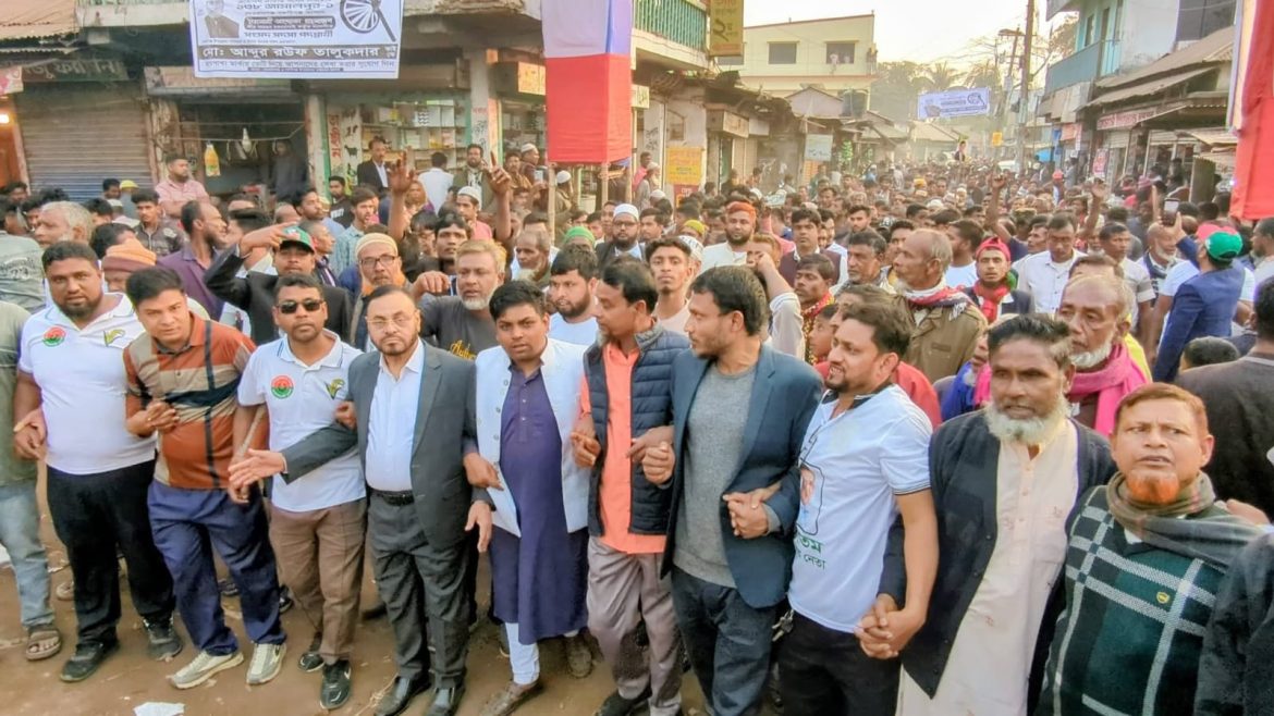 শনিবার (৭ ফেব্রুয়ারি) বিকালে বকশীগঞ্জ উপজেলার এনএম উচ্চ বিদ্যালয় মাঠ থেকে গণমিছিলটি শুরু হয়ে পৌর শহরের প্রধান সড়ক প্রদক্ষিণ করে। দুই উপজেলার প্রায় ৪০ হাজার নেতা কর্মী ও সাধারণ মানুষ গণমিছিলে অংশগ্রহণ করেন।