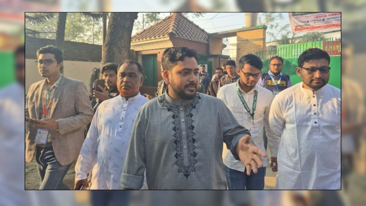 ঢাকা-১১ আসনে এগারো দলীয় জোটের প্রার্থী ও জাতীয় নাগরিক পার্টির (এনসিপি) আহ্বায়ক নাহিদ ইসলাম ভোট প্রদান করার জন্য কেন্দ্রে এসেছেন।