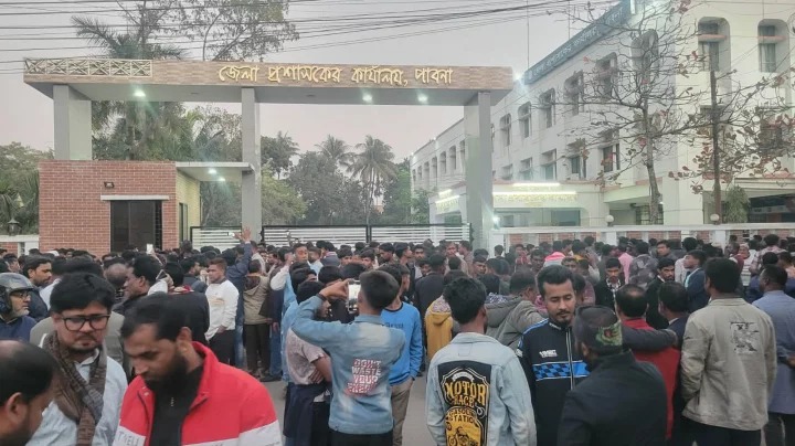 পাবনা-৩ ও পাবনা-৪ আসনে ভোট পুনর্গণনার দাবিতে জেলা প্রশাসক ও জেলা রিটার্নিং কর্মকর্তার কার্যালয়ের সামনে অবস্থান কর্মসূচি ও বিক্ষোভ করেছেন বিএনপির নেতাকর্মীরা।