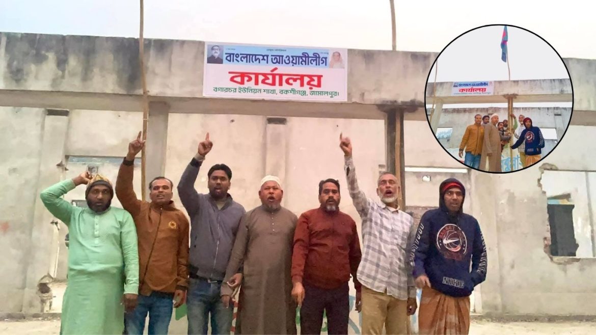 জামালপুরের বকশীগঞ্জে জয়বাংলা স্লোগান দিয়ে কার্যক্রম নিষিদ্ধ আওয়ামী লীগের কার্যালয়ে দলীয় ও জাতীয় পতাকা উত্তোলন করা হয়েছে।