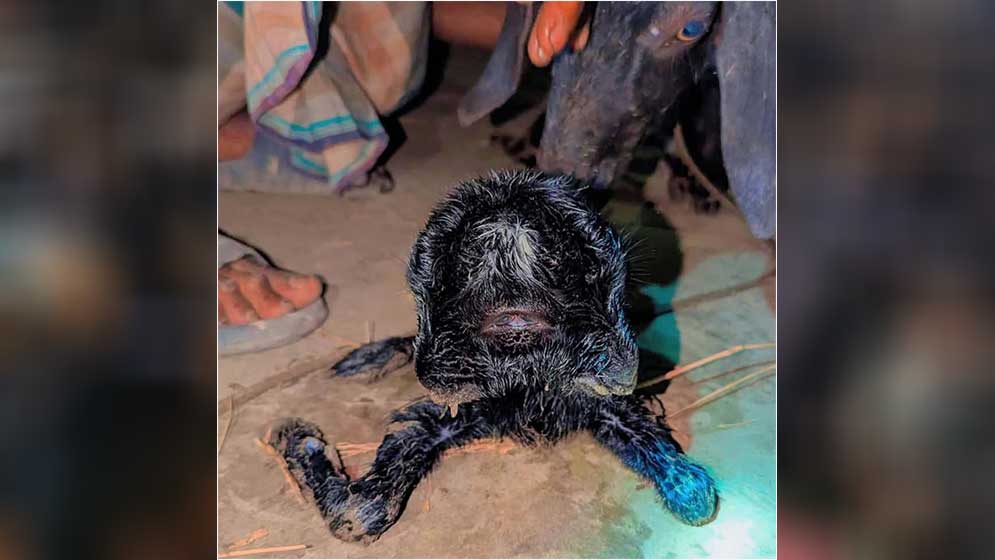 স্থানীয় সূত্রে জানা যায়, ছাগলটি বিরল আকৃতির বাচ্চা প্রসব করলে জিন্নাহ ফকিরের পরিবারের সদস্যরা দেখে বিস্মিত হয়ে পড়েন। জন্ম নেওয়া বাচ্চাটির রয়েছে দুটি পৃথক মুখ ও চারটি চোখ। সামাজিক যোগাযোগমাধ্যমে এই খবর ছড়িয়ে পড়লে আশপাশের গ্রাম থেকেও উৎসুক মানুষ এক নজর দেখতে ভিড় করছেন। বর্তমানে ছাগলের বাচ্চাটি জীবিত থাকলেও তার শারীরিক অবস্থা নিয়ে উদ্বেগ প্রকাশ করেছেন স্থানীয়রা।