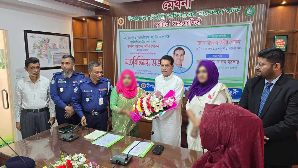 নরসিংদী সদর-১ আসনের নবনির্বাচিত সংসদ সদস্য খায়রুল কবির খোকন-এর সাথে নরসিংদী সদর উপজেলা প্রশাসনের বিভিন্ন দপ্তরের প্রধান কর্মকর্তাদের মতবিনিময় সভা অনুষ্ঠিত হয়েছে।