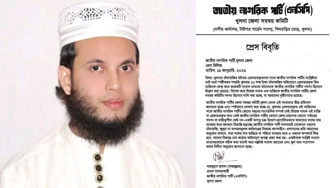 জুলাই গণ-অভ্যুত্থান পরবর্তী সময়ে তরুণদের নতুন রাজনৈতিক প্ল্যাটফর্ম হিসেবে আত্মপ্রকাশ করা জাতীয় নাগরিক পার্টি (এনসিপি) নিয়ে খুলনায় ব্যাপক বিতর্ক সৃষ্টি হয়েছে। বিশেষ করে দলটির খুলনা জেলা শাখার প্রধান সমন্বয়কারীর বিরুদ্ধে ওঠা চাঁদাবাজির অভিযোগ এখন টক অব দ্য টাউনে পরিণত হয়েছে।