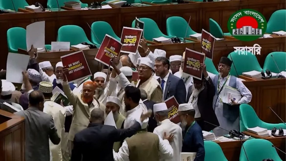 ত্রয়োদশ জাতীয় সংসদের প্রথম অধিবেশনে রাষ্ট্রপতির ভাষণের প্রতিবাদ জানিয়ে সংসদ কক্ষ ত্যাগ (ওয়াকআউট) করেছেন বিরোধী দল জামায়াতে ইসলামীসহ ১১ দলীয় জোটের সংসদ সদস্যরা।