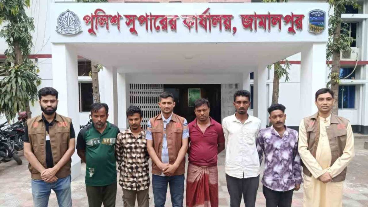 গ্রেপ্তার ব্যক্তিরা হলেন— দেওয়ানগঞ্জ উপজেলার জোয়ানের চর গ্রামের ফটিক শিকদারের ছেলে সাইদুর রহমান (৩৫) এবং জামালপুর সদর উপজেলার শেখের ভিটা এলাকার আব্দুল মুন্নার ছেলে রাশেদ মোশারফ বাবু (৩১), বনপাড়া এলাকার মুকুল মিয়ার ছেলে মো. মুন্না (৩২), মৃত আব্দুল বারেকের ছেলে আফ্রিদী ইসলাম (৩০) ও মৃত আজগর আলীর ছেলে আরিফুল ইসলাম রনি (৪২)।