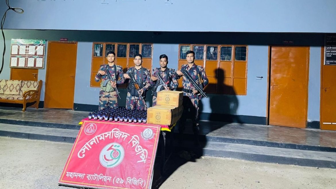 চাঁপাইনবাবগঞ্জের সোনামসজিদ সীমান্তে মাদকবিরোধী অভিযান চালিয়ে বিপুল পরিমাণ ভারতীয় নেশাজাতীয় সিরাপ ও একটি প্রাইভেটকারসহ একজনকে আটক করেছে ৫৯ বিজিবি (মহানন্দা ব্যাটালিয়ন)। পৃথক দুটি অভিযানে ফেন্সিডিলের বিকল্প হিসেবে ব্যবহৃত মোট ৫৭৭ বোতল ‘Eskuf DX’ সিরাপ জব্দ করা হয়।