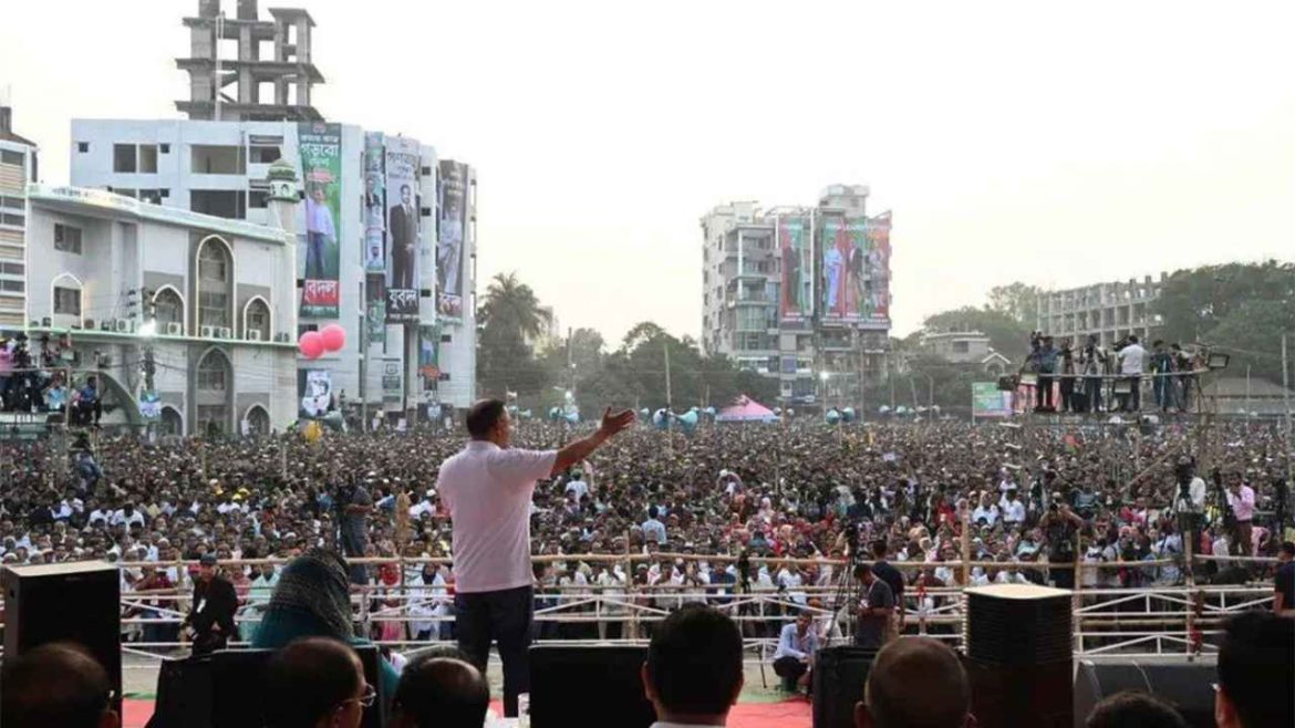 এদিকে, জনসভা শুরুর আগেই দুপুর থেকে ছোট ছোট মিছিল নিয়ে নেতাকর্মীরা আলতাফুন্নেছা খেলার মাঠে জনসভায় আসতে শুরু করেন। বিকাল ৩টার মধ্যে পুরো মাঠ প্রাঙ্গণ জনসমুদ্রে রূপ নেয়। মাঠ প্রাঙ্গণ ছাড়িয়ে আশপাশের সড়কগুলোতেও নেতাকর্মীদের অবস্থান নিতে দেখা যায়।