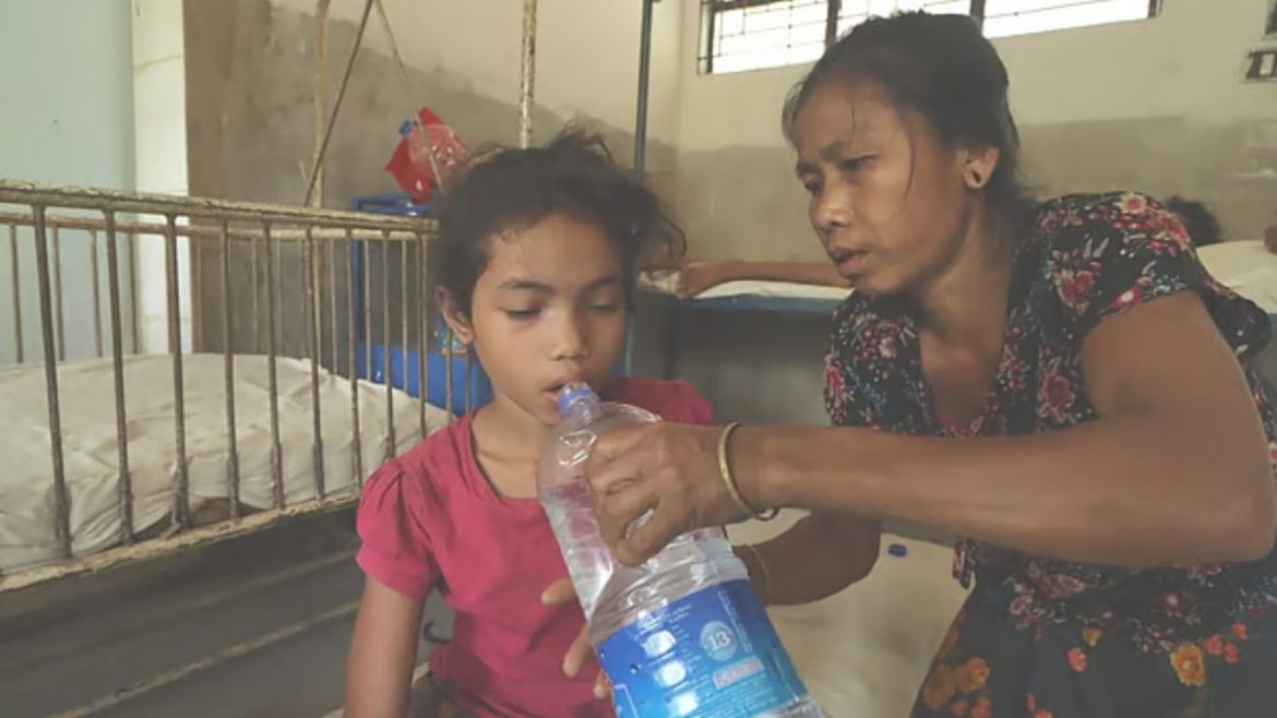 হামের উপসর্গ নিয়ে ভর্তি এক শিশুর শয্যার পাশে পাখা করছেন তার বাবা। বৃহস্পতিবার (২৩ এপ্রিল) সকালে বান্দরবানের আলীকদম উপজেলা স্বাস্থ্যকেন্দ্রে