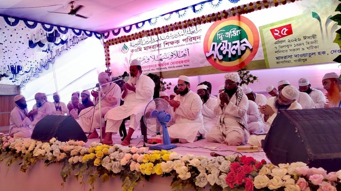 শনিবার (২৫ এপ্রিল) গাজীপুরের কাপাসিয়া উপজেলার দেওনা দাওয়াতুল হক মাদ্রাসা প্রাঙ্গণে আয়োজিত সংগঠনের দ্বি-বার্ষিক সম্মেলনে নেতৃবৃন্দ এই দাবি উত্থাপন করেন। সম্মেলনে বক্তারা বলেন, কওমি শিক্ষা একটি বিশেষায়িত ব্যবস্থা। আধুনিকায়নের নামে যারা এর পরিমার্জন করতে চায়, তারা মূলত এই শিক্ষাকে একটি ‘সনদ সর্বস্ব’ শিক্ষায় পরিণত করার ষড়যন্ত্রে লিপ্ত।