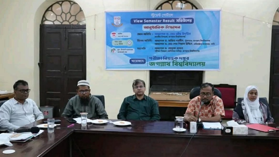 অনুষ্ঠানে সভাপতিত্ব করেন পরীক্ষা নিয়ন্ত্রক অধ্যাপক ড. মোস্তফা হাসান। বিশেষ অতিথি হিসেবে উপস্থিত ছিলেন ট্রেজারার অধ্যাপক ড. সাবিনা শরমীন এবং রেজিস্ট্রার (ভারপ্রাপ্ত) অধ্যাপক ড. মোঃ শেখ গিয়াস উদ্দিন। ট্রেজারার তার বক্তব্যে বলেন, এই উদ্যোগের মাধ্যমে জগন্নাথ বিশ্ববিদ্যালয় প্রযুক্তিনির্ভর সেবায় আরও এক ধাপ এগিয়ে গেল। এটি শিক্ষার্থীদের জন্য ফলাফল দেখার প্রক্রিয়াকে দ্রুত, সহজ ও স্বচ্ছ করবে। এছাড়া বিজ্ঞান অনুষদের ডিন অধ্যাপক ড. পরিমল বালা, আইসিটি সেলের পরিচালক অধ্যাপক ড. মোহাম্মদ নাসির উদ্দিনসহ অন্যান্যরা বক্তব্য প্রদান করেন। তারা বলেন, এই অনলাইন ব্যবস্থা চালুর ফলে শিক্ষার্থীরা ঘরে বসেই ফলাফল জানতে পারবে, যা প্রশাসনিক কার্যক্রমে স্বচ্ছতা ও গতিশীলতা বৃদ্ধি করবে।