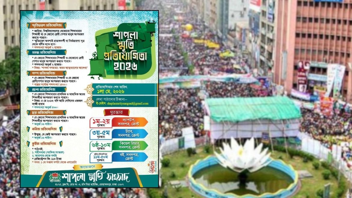 ইতিহাসের বেদনাবিধুর এক অধ্যায়কে স্মরণ, সংরক্ষণ এবং ন্যায়বিচারের দাবি জোরদার করার লক্ষ্য নিয়ে আয়োজন করা হয়েছে ব্যতিক্রমধর্মী—শাপলা স্মৃতি প্রতিযোগিতা-২০২৬। ২০১৩ সালের শাপলা চত্বরের সেই আলোচিত ঘটনার স্মৃতিকে নতুন প্রজন্মের মাঝে তুলে ধরতে এবং সৃজনশীলতার মাধ্যমে সত্যকে জীবন্ত রাখতে এই উদ্যোগ বিশেষ তাৎপর্য বহন করে। সম্প্রতি একটি ঘোষণাপত্রে প্রতিযোগিতার বিষয়, সময় ও বিজয়ীদের পুরস্কারের কথা তুলে ধরেছে সংগঠনটি। সংশ্লিষ্ট সূত্র জানায়, আগামী ১ মে ২০২৬ প্রতিযোগিতার শেষ তারিখ।