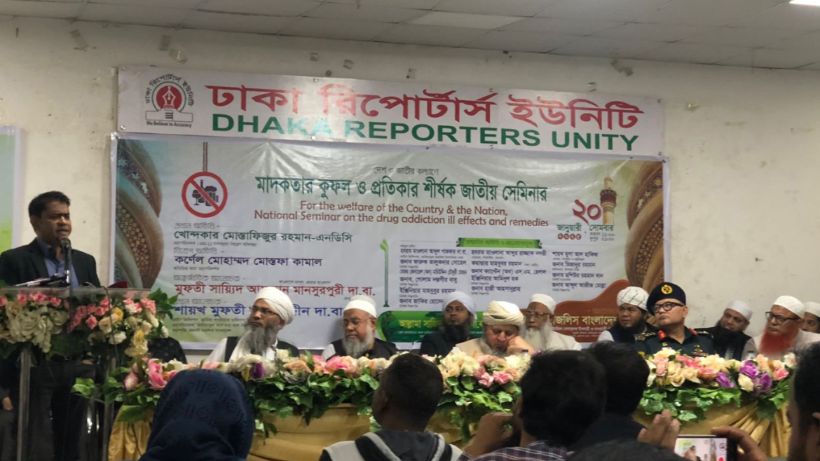 সোমবার (২০ জানুয়ারি) ঢাকা রিপোর্টার্স ইউনিটির নসরুল হামিদ মিলনায়তনে মাদানী মজলিস বাংলাদেশ আয়োজিত ‘দেশ ও জাতির কল্যাণে মাদকের কুফল ও প্রতিকার’ শীর্ষক জাতীয় সেমিনারে আলেমরা এসব কথা বলেন।
