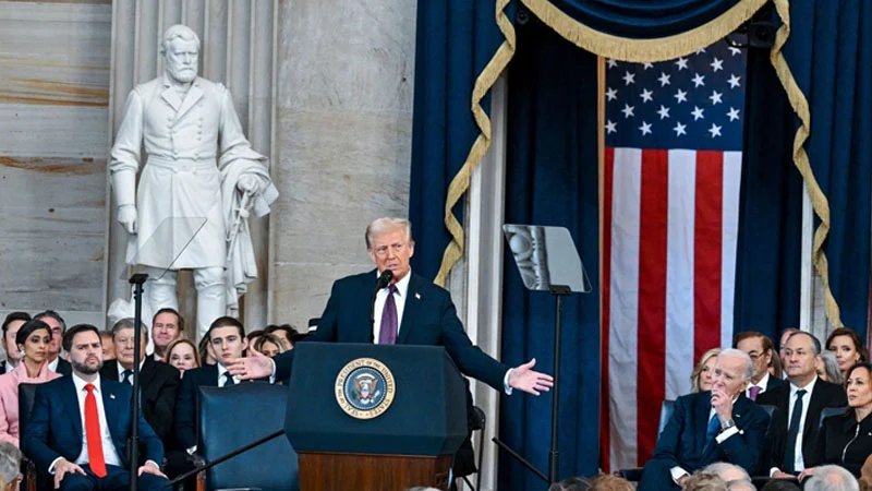 ‘দ্য গোল্ডেন এজ অব অ্যামেরিকা বিগিনস রাইট নাও’… এটাই ছিলো ডোনাল্ড জে ট্রাম্পের প্রথম বাক্য। ওয়াশিংটন ডিসি’র ক্যাপিটল হিলে যুক্তরাষ্ট্রের ৪৭তম প্রেসিডেন্ট হিসেবে শপথ নেওয়ার পর বক্তব্য রাখছিলেন ট্রাম্প। মুহুর্মুহু করতালির মধ্য দিয়ে বক্তৃতায় নিজের কার্যপরিকল্পনার নানা দিক তুলে ধরেন তিনি।