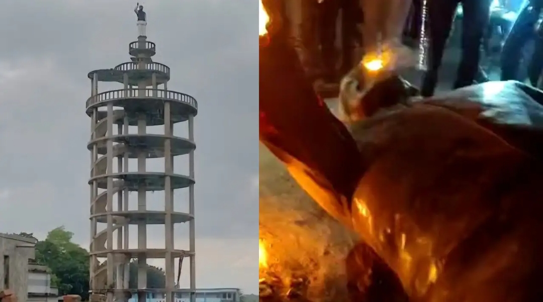 কয়েক বছর আগে ঝিনাইদহের কালীগঞ্জের কাষ্টভাঙ্গা ইউনিয়নের শমশেরনগর গ্রামে করা হয় একটি টাওয়ার। স্থানীয় এক আওয়ামী লীগ নেতার উদ্যোগে করা ১২৩ ফুট উঁচু টাওয়ারটির নাম দেওয়া হয় ‘স্টাটুচ অফ ফ্রিডম’। টাওয়ারটির ওপরে স্থাপন করা হয়েছিল শেখ মুজিবুর রহমানের ম্যুরাল। অবশেষে সেটি নামিয়ে ভাঙল স্থানীয়রা। পাশাপাশি টাওয়ারটিতে আগুন দিয়েছে তার।