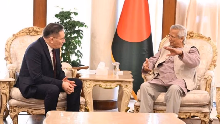 শান্তিপূর্ণ পরমাণু প্রযুক্তির বিকাশ ও অভিন্ন স্বার্থের ওপর গুরুত্বারোপ করে প্রধান উপদেষ্টা অধ্যাপক মুহাম্মদ ইউনূস বলেছেন, ‘বাংলাদেশ রাশিয়ার সঙ্গে পরমাণু শক্তির ক্ষেত্রে সহযোগিতা সম্প্রসারণে আগ্রহী।’