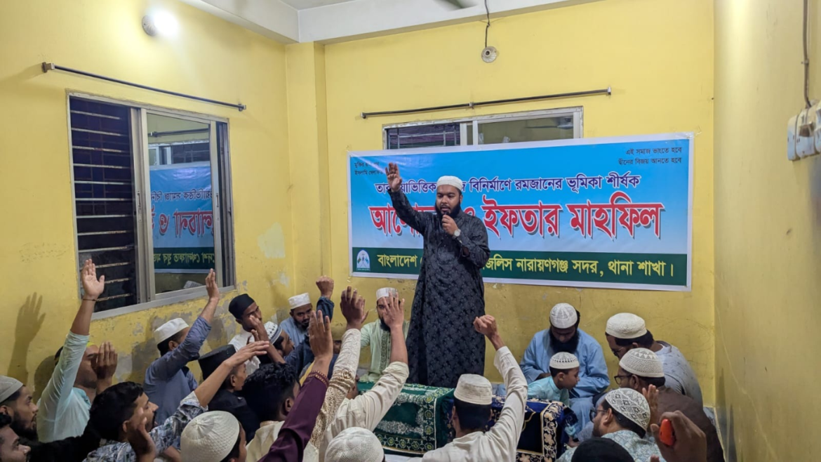 বাংলাদেশ খেলাফত যুব মজলিস নারায়ণগঞ্জ মহানগরীর সদর থানা শাখার উদ্যোগে তাকওয়া ভিত্তিক সমাজ বিনির্মাণে রোজার ভূমিকা শীর্ষক আলোচনা সভা ও ইফতার মাহফিল অনুষ্ঠিত হয়েছে।