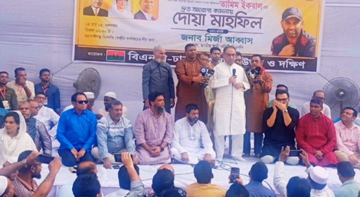 মির্জা আব্বাস জানান, তারেক রহমান ব্যক্তিগতভাবে তামিমের খোঁজ রাখছেন। তার নির্দেশেই বিএনপি আজকের দোয়া মাহফিলের আয়োজন করেছে।