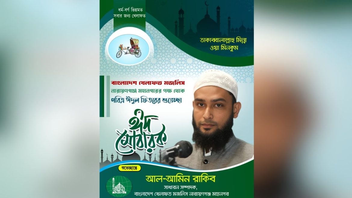 পবিত্র ঈদুল ফিতরের শুভেচ্ছা জানিয়েছেন বাংলাদেশ খেলাফত মজলিস নারায়ণগঞ্জ মহানগরের সাধারণ সম্পাদক আল আমিন রাকিব।